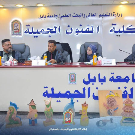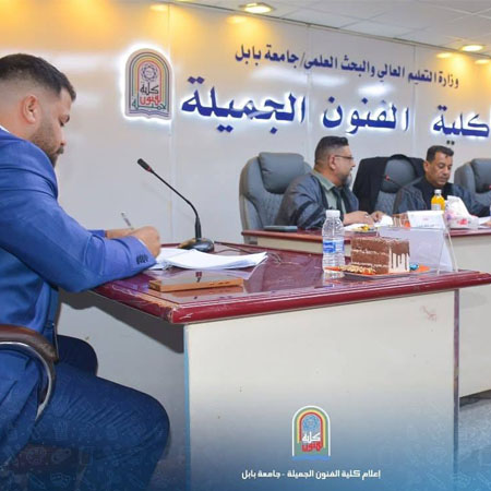 مناقشة رسالة ماجستيرجرت مناقشة رسالة ماجستير في كلية الفنون الجميلة بجامعة بابل، للطالب أمير بشير بدر جاسم، بعنوان: "توظيف مفردات الحضارة الصينية بأعمال خزفية معاصرة دراسة تطبيقية ".جرى ذلك في يوم الخميس الموافق 21 أغسطس 2025، في قاعة الدكتور عبد السادة عبد الصاحب.تكونت لجنة المناقشة من السادة المدرجة أسماؤهم أدناه: * أ. د. شيماء حمزة رديف: رئيسًا. * أ. م. د. علي جرد كاظم: عضوًا. * أ. م. د. خالد جبار أسود: عضوًا. * أ. م. د. حسين هاشم الياسري: عضوًا ومشرفًا.هدفت الدراسة إلى توظيف مفردات الحضارة الصينية في أعمال خزفية معاصرة، وذلك من خلال دراسة تطبيقية تناولت مفردات الحضارة الصينية وتوظيفها في أعمال فنية خزفية. ركزت الدراسة على الجانب التطبيقي في مجال الخزف من خلال عمل مجموعة من النماذج الخزفية التي تمثل تطبيقات عملية لأفكار البحث، واستخدمت الدراسة طرقًا فنية متنوعة في تشكيل وتزجيج النماذج.___________مسؤول موقع الكلية / مريم أسامة_ موقع الكلية الرسمي ©?https://finearts.uobabylon.edu.iq/_ صفحة كلية الفنون الجميلة على الفيس بوك ©?https://www.facebook.com/share/1RFRk1RJLN/_ صفحة كلية الفنون الجميلة على الإنستغرام ©?https://www.instagram.com/finearts.uob?igsh=Yjd3bTFqdWVybWth_ موقع مجلة نابو ©?https://naboo.uobabylon.edu.iq/