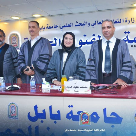 مناقشة رسالة ماجستير جرت مناقشة رسالة الماجستير للطالبة شيماء محمد حامد في كلية الفنون الجميلة بجامعة بابل. وحملت الرسالة عنوان : "مفهوم اليقظة في النص المسرحي العراقي المعاصر".وعُقدت المناقشة في تمام الساعة التاسعة من صباح يوم الاثنين الموافق 25 / 8 / 2025 في قاعة الدكتور عبد السادة عبد الصاحب.تألفت لجنة المناقشة من السادة المدرجة أسماؤهم أدناه: * أ.د. معتمد مجيد حميد (أستاذ / فنون مسرحية / أدب ونقد / جامعة بابل / كلية الفنون الجميلة) - رئيسًا. * أ.م.د. محمد مهدي حسون (أستاذ مساعد / فنون مسرحية / أدب ونقد / جامعة بغداد / كلية الفنون الجميلة) - عضوًا. * أ.م.د. رقية وهاب مجيد (أستاذ مساعد / تربية مسرحية / تربية مسرحية / جامعة بابل / كلية الفنون الجميلة) - عضوًا. * أ.د. عامر حامد محمد (أستاذ / تربية مسرحية / تربية مسرحية / جامعة بابل / كلية الفنون الجميلة) - عضوًا ومشرفًا.تناول البحث مفهوم اليقظة في النص المسرحي العراقي المعاصر، وناقش أهميته ووظيفته من خلال تحليل النصوص المسرحية التي تعكس هذا المفهوم.___________مسؤول موقع الكلية / مريم اسامة_ موقع الكلية الرسمي ©?https://finearts.uobabylon.edu.iq/_ صفحة كلية الفنون الجميلة على الفيس بوك ©?https://www.facebook.com/share/1RFRk1RJLN/_ صفحة كلية الفنون الجميلة على الإنستغرام ©?https://www.instagram.com/finearts.uob?igsh=Yjd3bTFqdWVybWth_ موقع مجلة نابو ©?https://naboo.uobabylon.edu.iq/