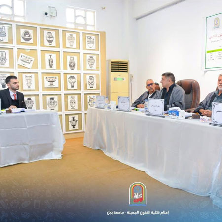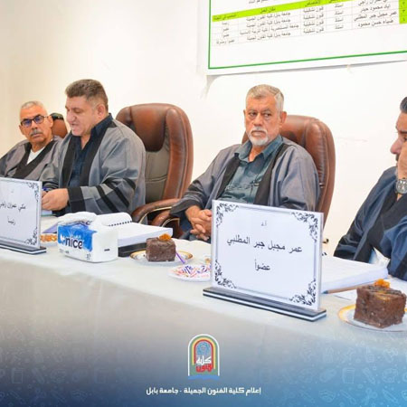 إعلان مناقشة رسالة ماجستيرتمت مناقشة رسالة الماجستير للطالب مصطفى سمير سالم في كلية الفنون الجميلة بجامعة بابل، وحملت الرسالة عنوان : "السمات الفكرية والتاريخية في رسوم بتول الفكيكي".وقد جرت المناقشة في تمام الساعة التاسعة صباحًا من يوم الأربعاء الموافق 9/3/2025 في قاعة متحف الفنون التشكيلية.وتألفت لجنة المناقشة من الأساتذة الأفاضل التالية أسماؤهم: * أ.د. مكي عمران راجي (رئيسًا). * أ.د. إياد محمود حيدر (عضوًا). * أ.د. عمر مجبل جبر المطلبي (عضوًا). * أ.د. ضياء حسن محمود (عضوًا ومشرفًا).تناول البحث موضوع السمات الفكرية والتاريخية في رسوم الفنانة بتول الفكيكي. حيث اهتم الفصل الأول بالتحليل المنهجي للمشكلة البحثية التي تناولت الانقسامات الأيديولوجية في الفن المعاصر، وتحولت إلى دلالات فنية متميزة. أما الفصل الثاني، فتناول السمات الفكرية والتاريخية في رسوم بتول الفكيكي، وتضمن ثلاثة مباحث، هي: السمات الفكرية، والمراجع الفكرية، والفن العراقي القديم والمعاصر. وتناول الفصل الثالث إجراءات البحث التي شملت نموذجًا من الأعمال الفنية التي حصل عليها الباحث من مصادر مختلفة مثل المكتبة الفنية الخاصة، المجلات، وفولدرات المعارض الفنية، بالإضافة إلى المواقع الإلكترونية. وفي الختام، تناول الفصل الرابع استعراض نتائج البحث واستنتاجاته، بالإضافة إلى التوصيات والمقترحات.___________?? مسؤول موقع الكلية/ مريم اسامة عبد_ موقع الكلية الرسمي ©?https://finearts.uobabylon.edu.iq/_ صفحة كلية الفنون الجميلة على الفيس بوك ©?https://www.facebook.com/share/1RFRk1RJLN/_ صفحة كلية الفنون الجميلة على الإنستغرام ©?https://www.instagram.com/finearts.uob?igsh=Yjd3bTFqdWVybWth_ موقع مجلة نابو ©?https://naboo.uobabylon.edu.iq/