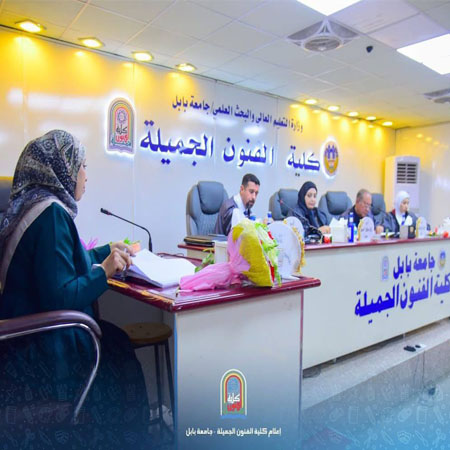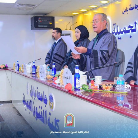 مناقشة رسالة ماجستير في كلية الفنون الجميلةجرت في كلية الفنون الجميلة بجامعة بابل مناقشة رسالة الماجستير للطالبة نهلة مع الله راضي عبد، والموسومة:(الاستقلال – الاعتماد على المجال وأثرهما في الخصائص الفنية للنتاجات الكرافيكية لدى طلبة كلية الفنون الجميلة)وتناولت الرسالة دراسة الأساليب المعرفية الخاصة بالاستقلال والاعتماد على المجال، وتحليل أثرها في النتاجات الكرافيكية لطلبة الفنون الجميلة، من خلال البحث في العناصر التكوينية والموضوعية والجمالية للأعمال الفنية ضمن عيّنة البحث.أُجريت المناقشة في تمام الساعة التاسعة من صباح يوم الاثنين الموافق 17/11/2025 على قاعة الدكتور عبد السادة عبد الصاحب، وتألفت لجنة المناقشة من السادة:1. أ.د. عباس نوري خضير – رئيساً2. أ.م.د. نجلاء خضير حسان – عضواً3. أ.م.د. رؤى صادق محمود – عضواً4. أ.م.د. بركات عباس سعيد – عضواً ومشرفاً___________مسؤول موقع الكلية / مريم أسامة عبد_ موقع الكلية الرسمي ©?https://finearts.uobabylon.edu.iq/_ صفحة كلية الفنون الجميلة على الفيس بوك ©?https://www.facebook.com/share/1RFRk1RJLN/_ صفحة كلية الفنون الجميلة على الإنستغرام ©?https://www.instagram.com/finearts.uob?igsh=Yjd3bTFqdWVybWth_ موقع مجلة نابو ©?https://naboo.uobabylon.edu.iq/