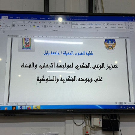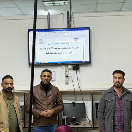 محاضرة في كلية الفنون الجميلة _جامعة بابلاضافة الى الخطة السنوية لشعبة التخطيط والمتابعة لمحور الخطة الاستراتيجية الامن الوطني (2025-2030) وبأشراف السيد المعاون العلمي تقيم كليتنا محاضرة بعنوان ( تعزيز الوعي الفكري لمواجهة الارهاب والقضاء على وجود الفكرية والسلوكية) في قسم التصميم بتاريخ (14/1/2026) بمشاركة كل من م.م سامر محمد شهاب و م. م حيدر يحي كاظم و م,م عمار مضر ومسؤول الشعبة شهاب حامد______________________مسؤول موقع الكلية / مريم أسامة عبد