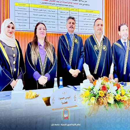 " مشاركة تدريسي من كلية الفنون الجميلة في مناقشة رسالة ماجستير بجامعة بغداد "شارك الدكتور أنيس حمود أحد تدريسيي قسم الفنون المسرحية في كلية الفنون الجميلة ، يوم الخميس الموافق 11/12/2025، في مناقشة علمية جرت في جامعة بغداد / كلية الفنون الجميلة / قسم الفنون الموسيقية .وجاءت المشاركة بعضوية لجنة مناقشة رسالة الماجستير الموسومة (خصائص التلحين لدى الفنان أحمد الخليل)، المقدمة من قبل الباحثة شهد علي حامد. وقد شهدت الجلسة مناقشة علمية مستفيضة، أُقِرَّت على إثرها الرسالة بتقدير جيد جدًا عالٍ.وتألفت لجنة المناقشة من السادة:1. الأستاذ الدكتور إحسان شاكر زلزلة / جامعة بغداد – رئيسًا2. المايسترو الأستاذ الدكتور مصطفى عباس علي السوداني / جامعة بغداد – عضوًا3. الأستاذ المساعد الدكتور أنيس حمود معيدي / جامعة بابل – عضوًا4. الأستاذة المساعدة الدكتورة زينب صبحي البياتي / جامعة بغداد – مشرفًا___________مسؤول موقع الكلية / مريم أسامة عبد_ موقع الكلية الرسمي ©?https://finearts.uobabylon.edu.iq/_ صفحة كلية الفنون الجميلة على الفيس بوك ©?https://www.facebook.com/share/1RFRk1RJLN/_ صفحة كلية الفنون الجميلة على الإنستغرام ©?https://www.instagram.com/finearts.uob?igsh=Yjd3bTFqdWVybWth_ موقع مجلة نابو ©?https://naboo.uobabylon.edu.iq/
